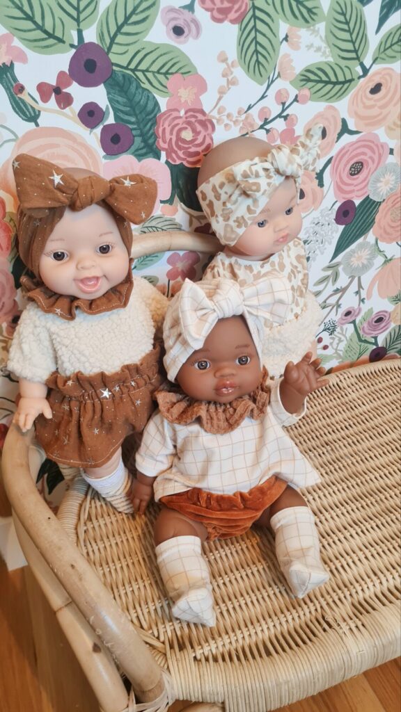 Je vous propose un large choix de poupées pour enfant Paola Reina, fabriquées en Espagne, ainsi que de jolies tenues cousues main, adaptées à chaque âge : dès 1 ans, avec la collection des poupées MINUS, dès 2 ans, avec des vêtements faciles à enfiler… Et comme il n’y a pas d’âge pour jouer à la poupée, des tenues pour les enfants petits ou grands de de 1 à 101 ans !