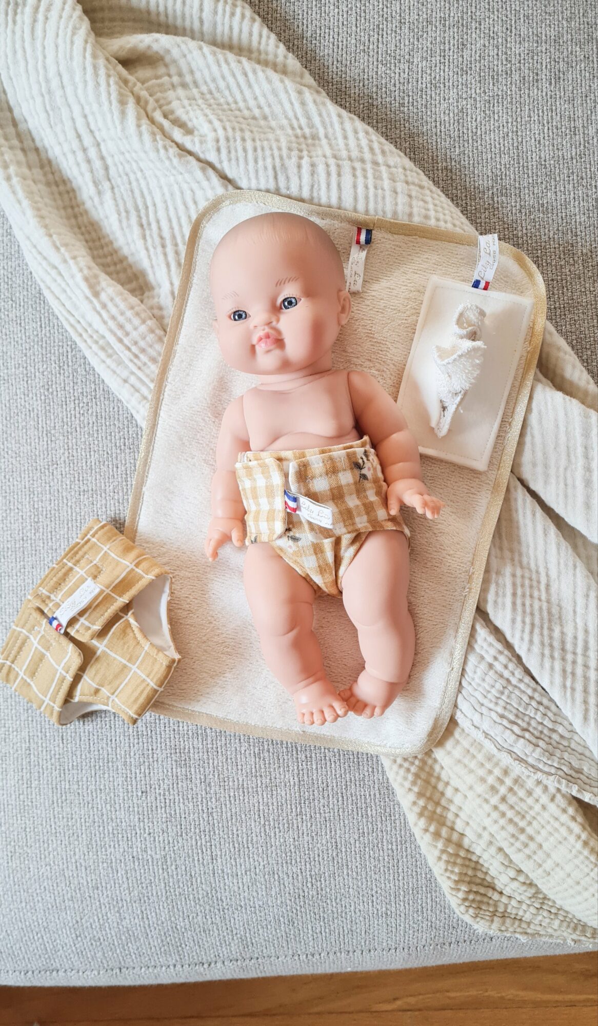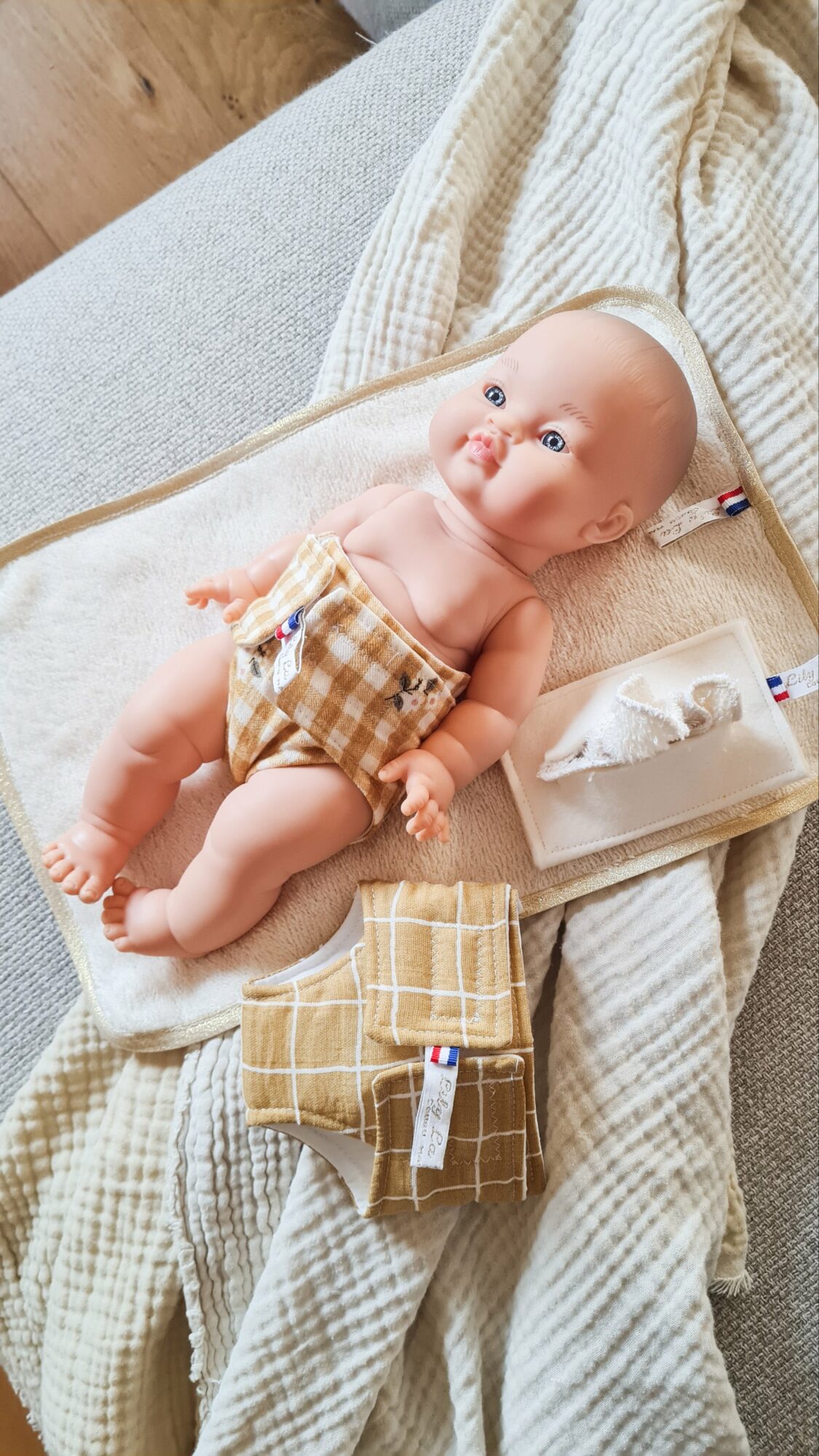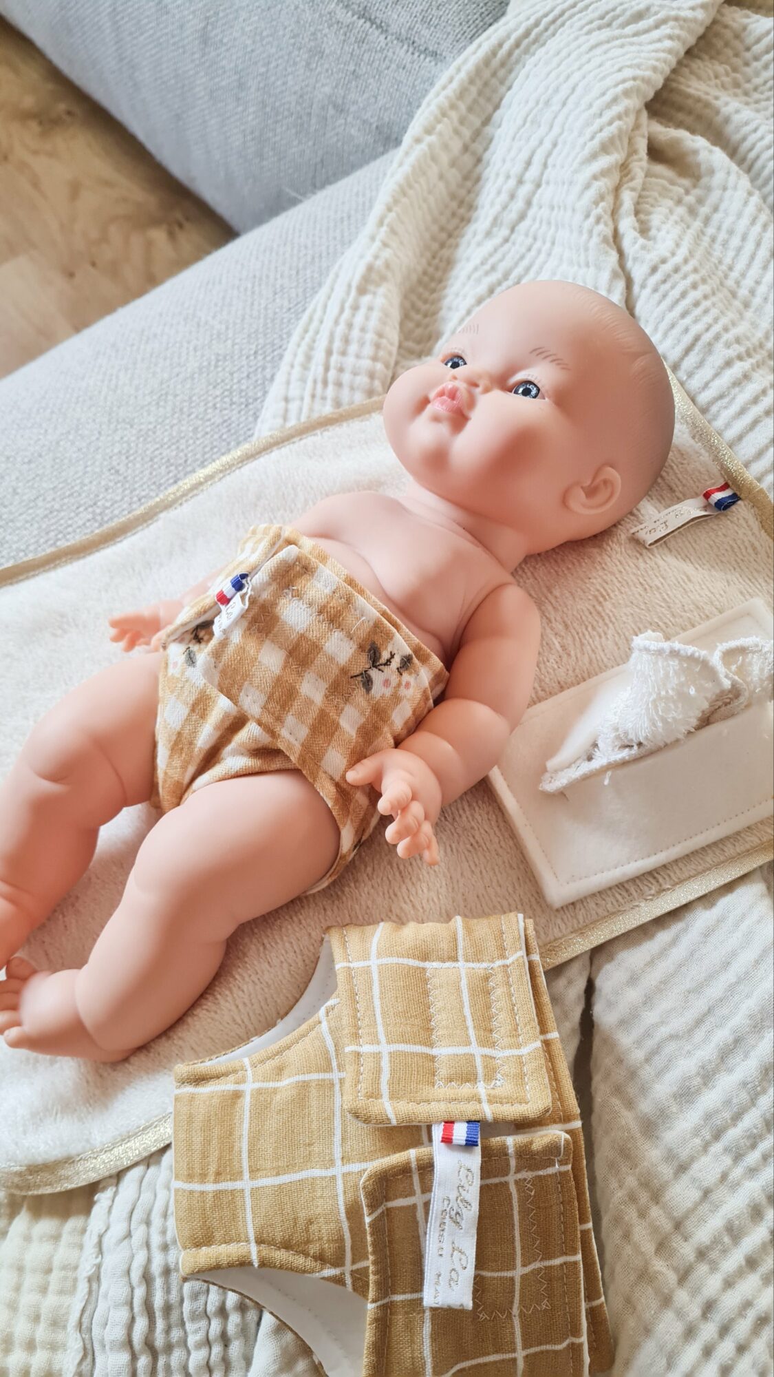 Un coffret de change parfait, fait main et surtout joli pour ses poupées Paola Reina ou Minikane de 34cm.