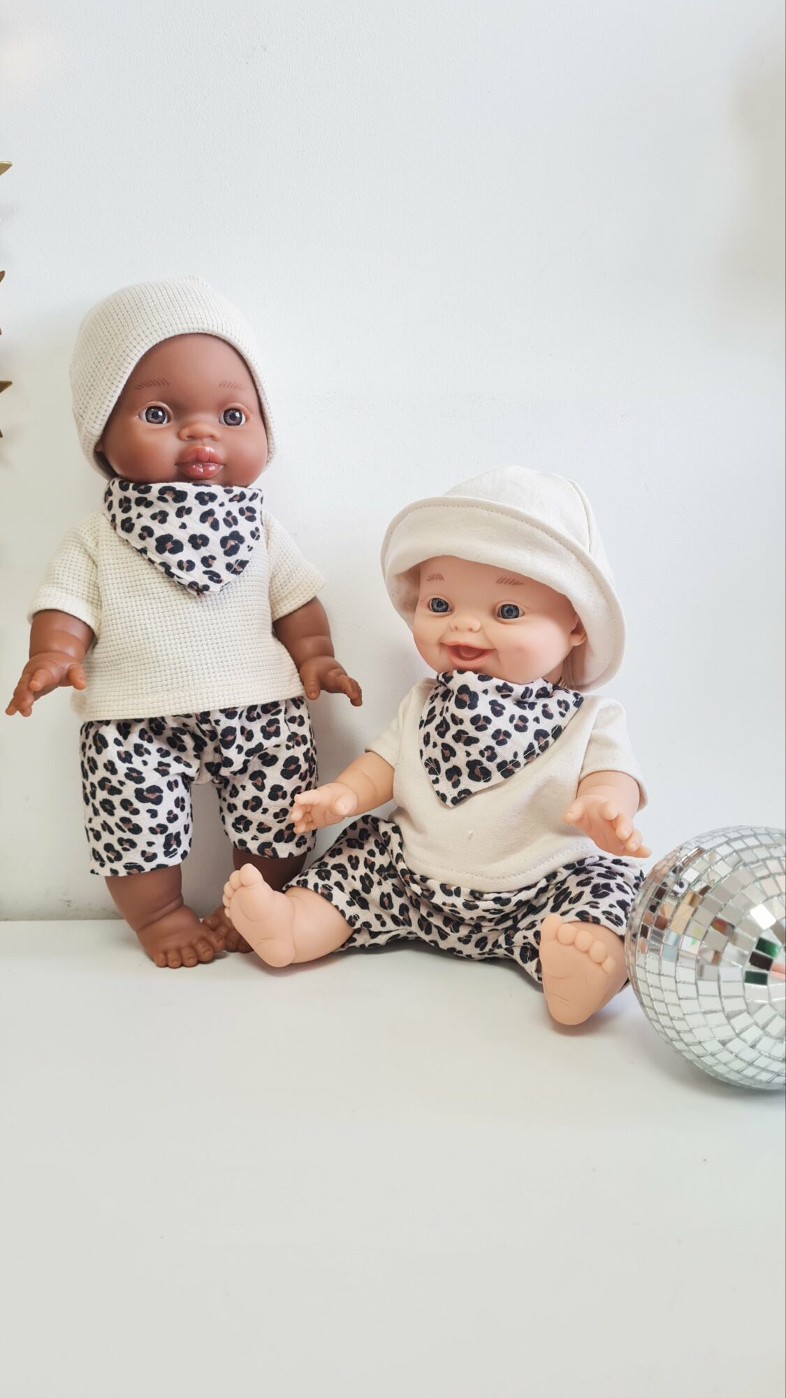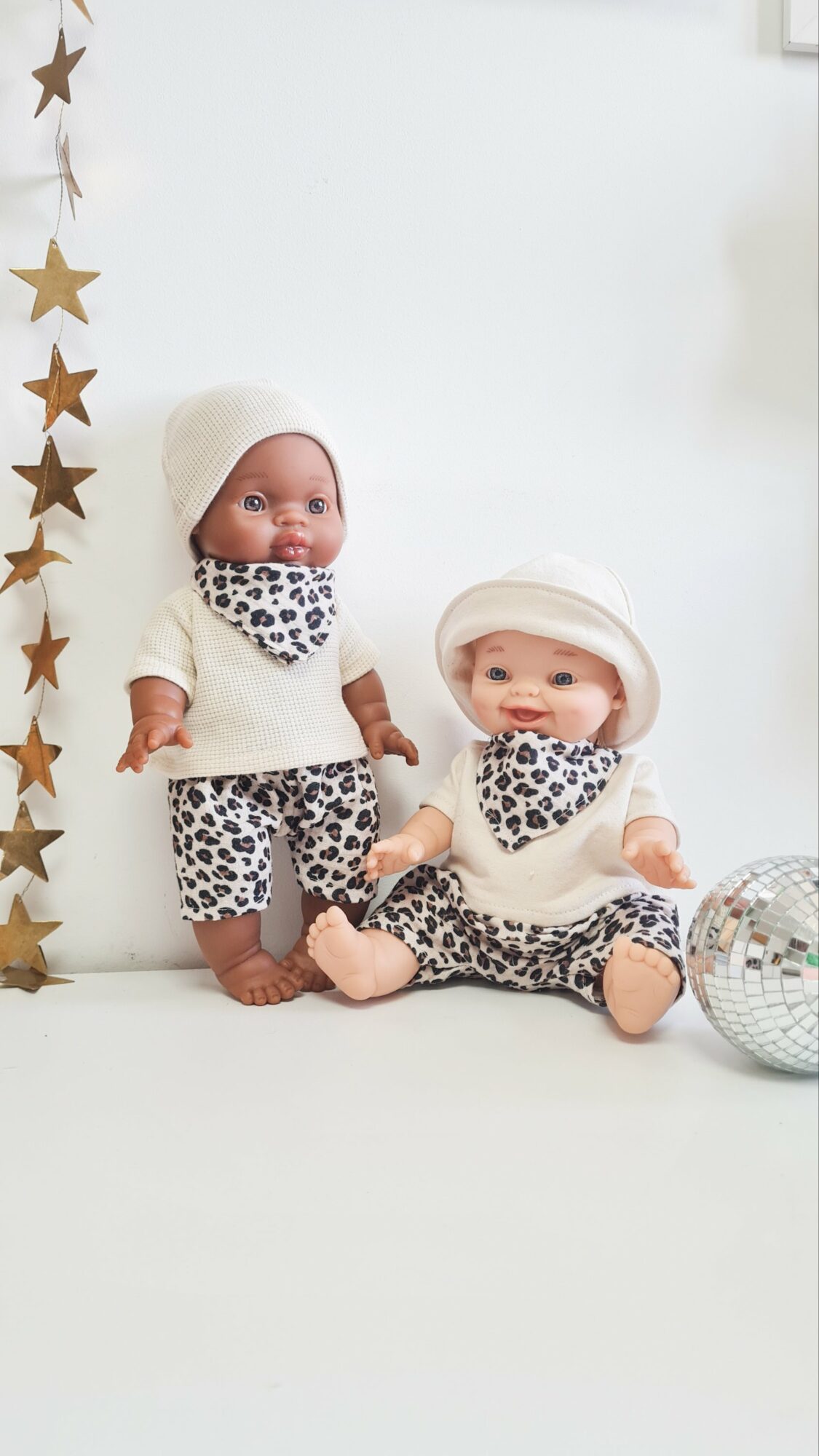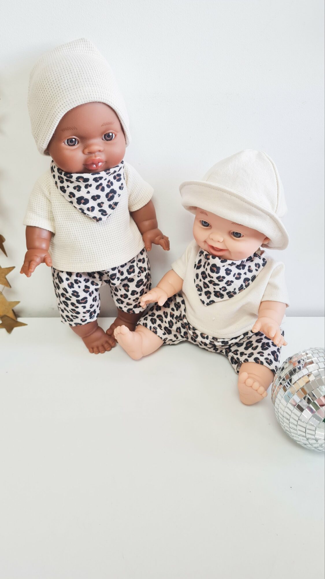 La tenue de gauche sur la photo pour poupée est composée de :