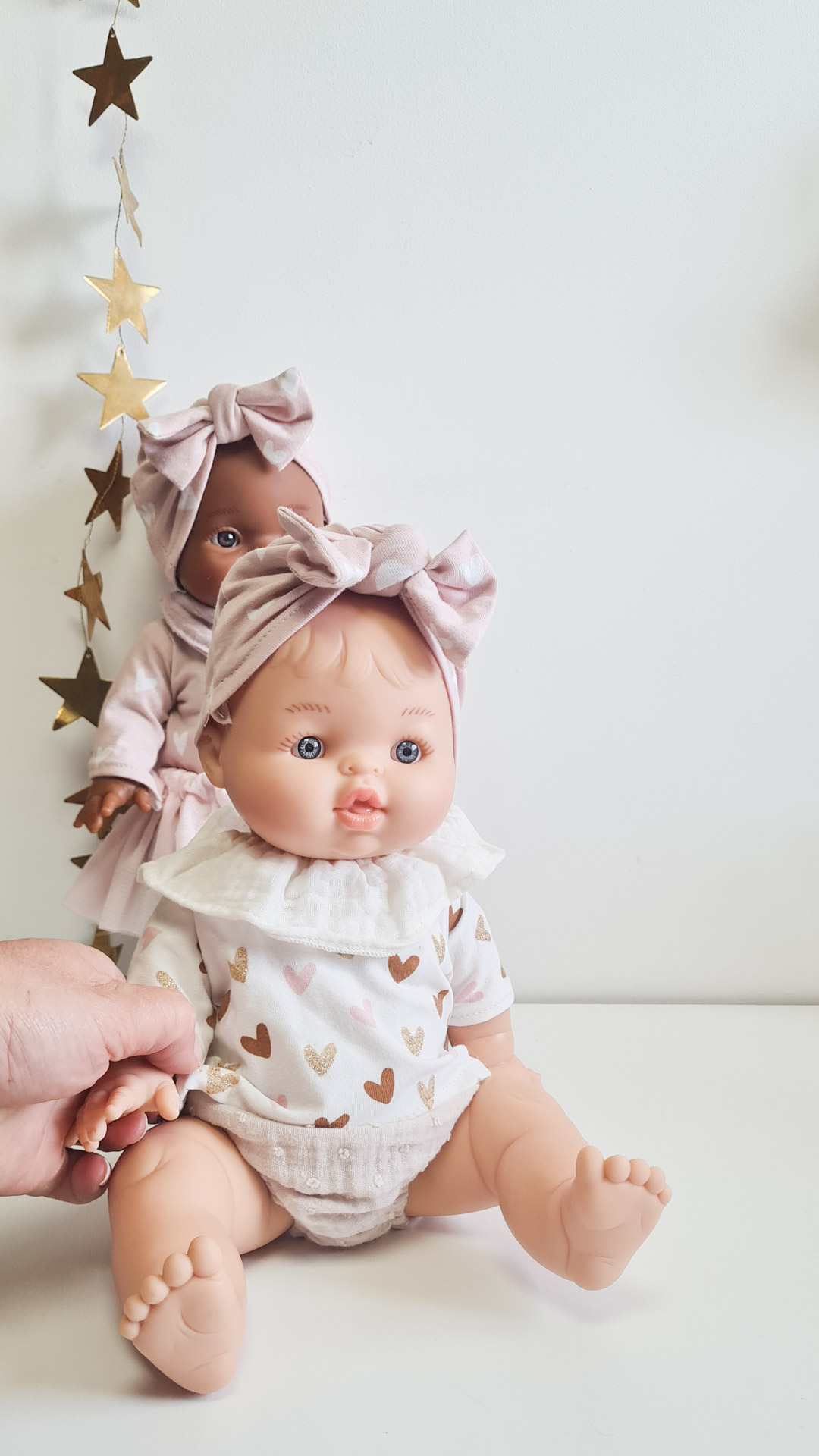 La tenue myrtille pour poupée 34cm est adaptée aux petites mains, à partir de 2 ans, selon l’agilité motrice de l’enfant.