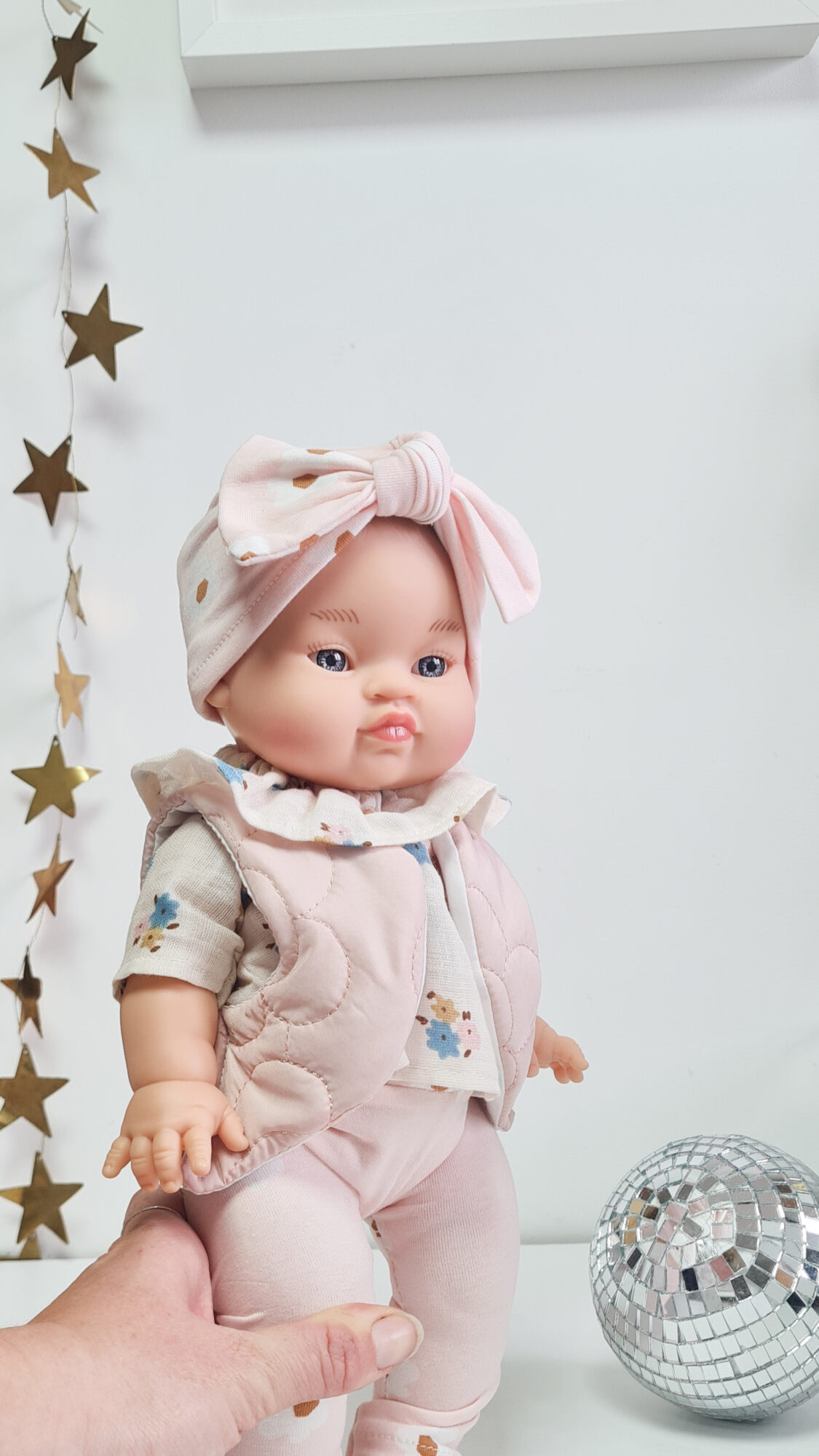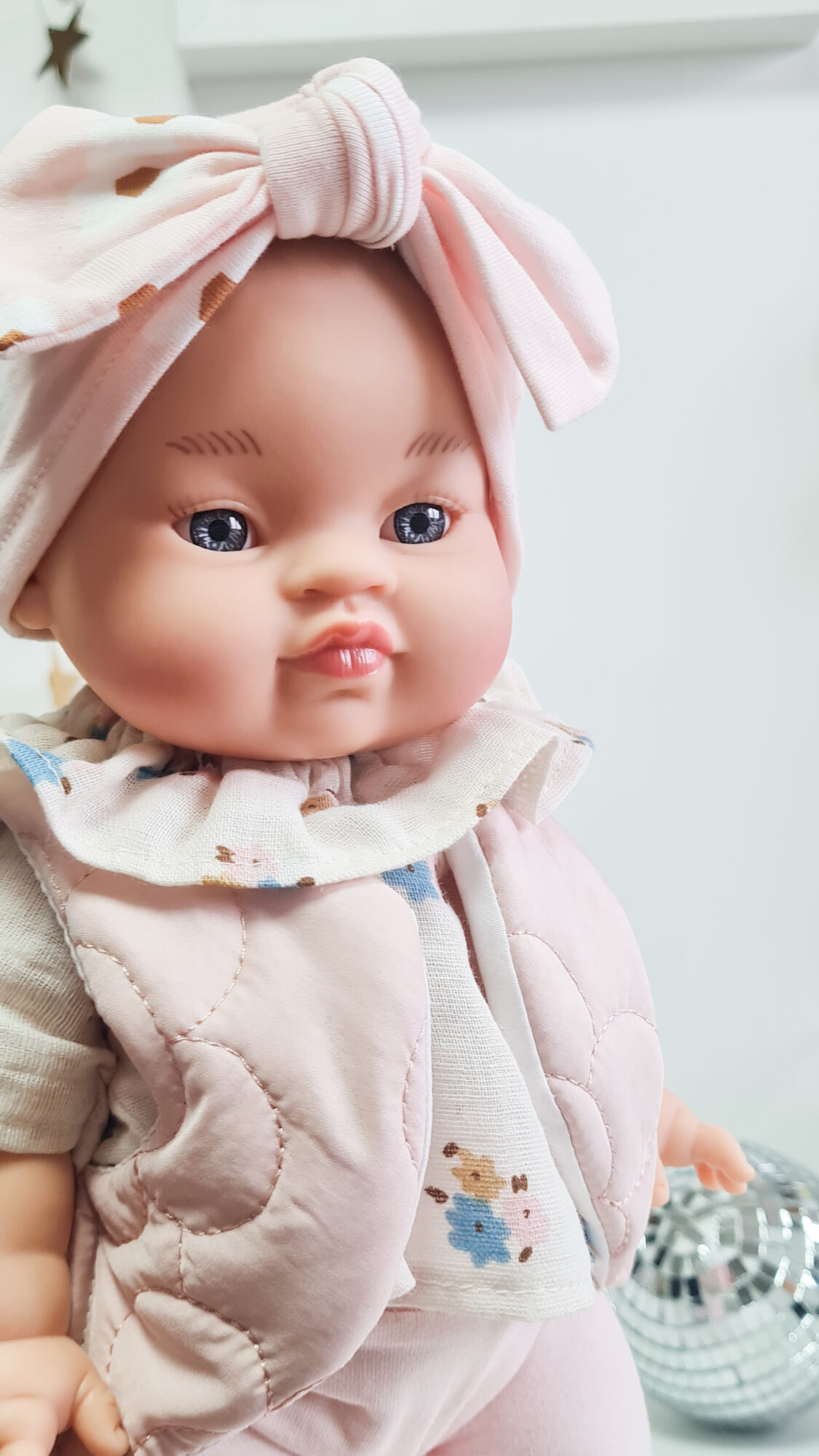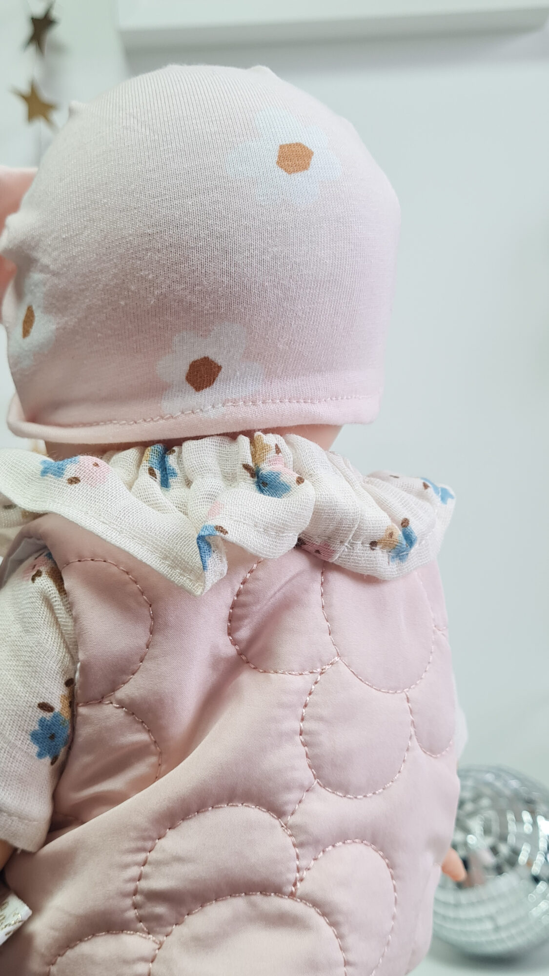Gilet matelassé fleurs pour poupée 34cm type Minikane ou Paola Reina.