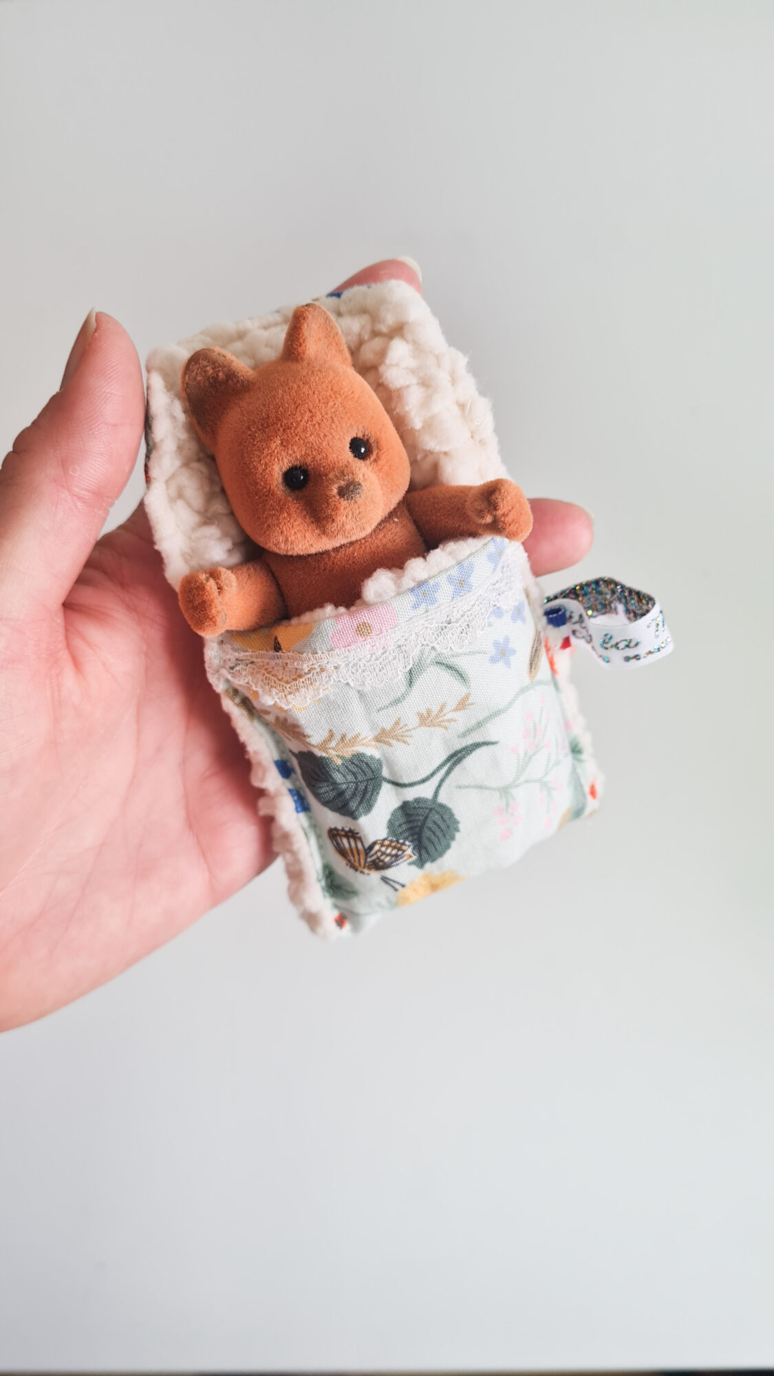 Chaque petit personnage est chiné avec soin, certains sont plus “âgés” que d’autres, certains un peu tâchés parfois un peu déplumés, mais c’est ce qui fait leur charme ! Les tailles peuvent varier également (il y a des adultes, et des petits, tous les lits sont de la même taille)