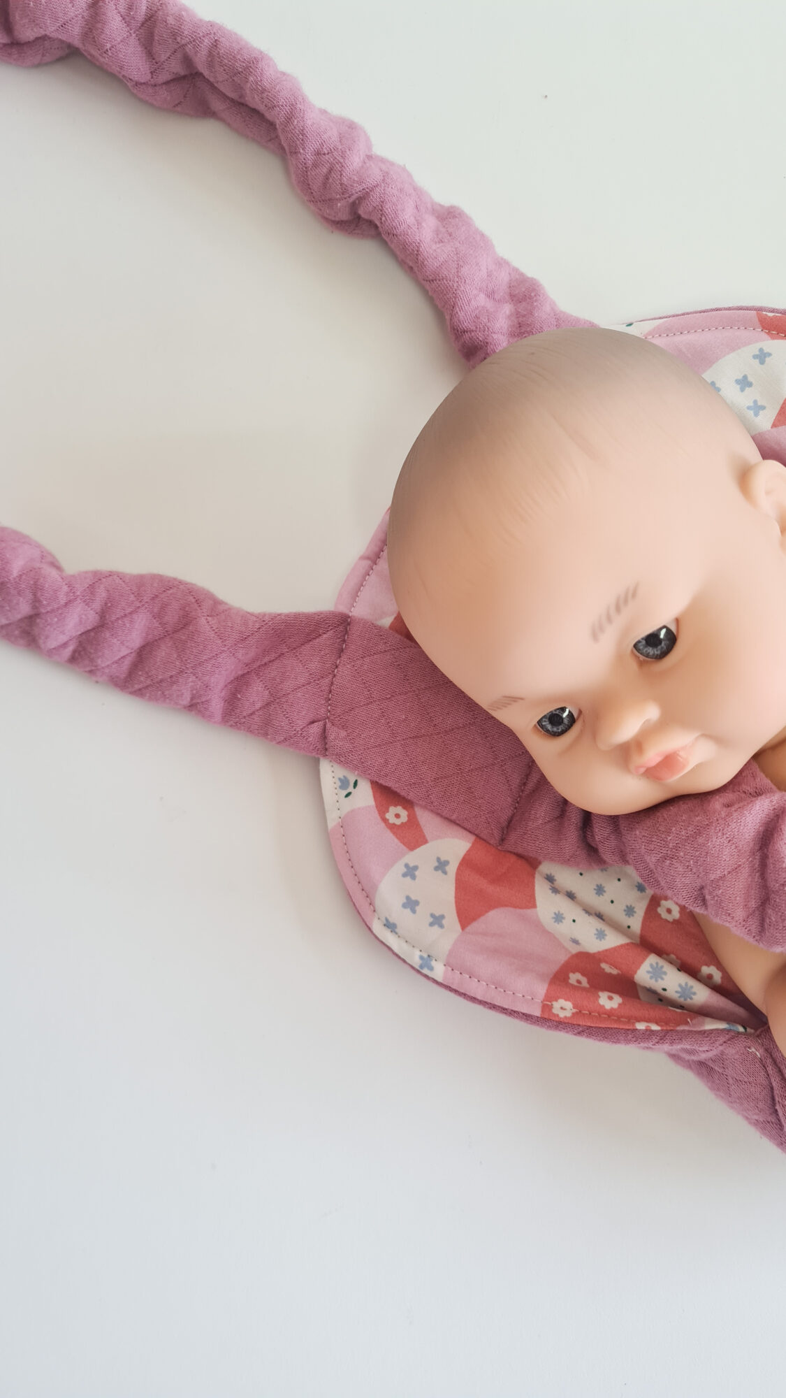 Un porte poupée joli, confortable, et facile à enfiler ! pensé et conçu pour les enfants.par une éducatrice de jeunes enfants.