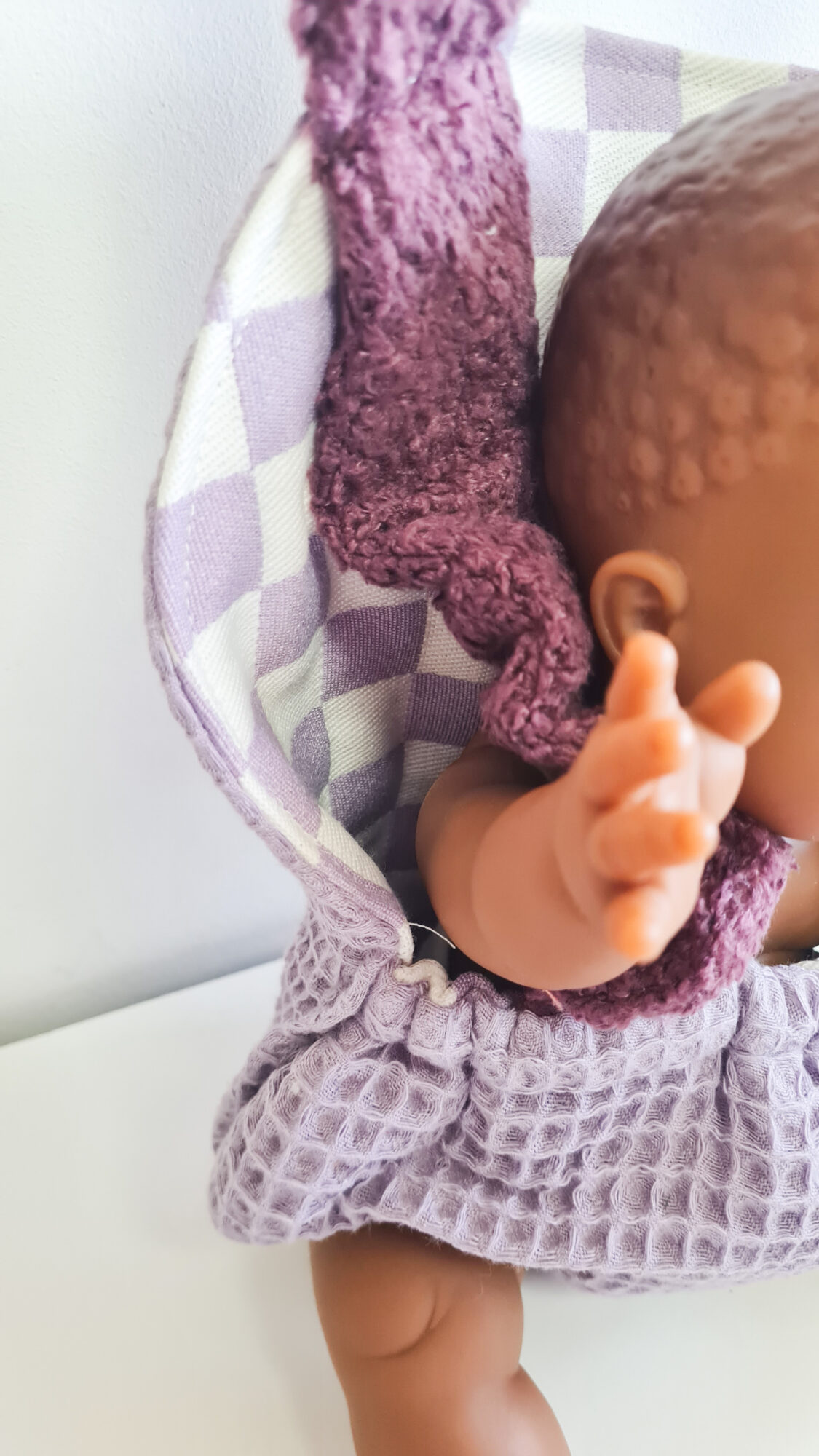 Un porte poupée joli, confortable, et facile à enfiler ! pensé et conçu pour les enfants, par une éducatrice de jeunes enfants.