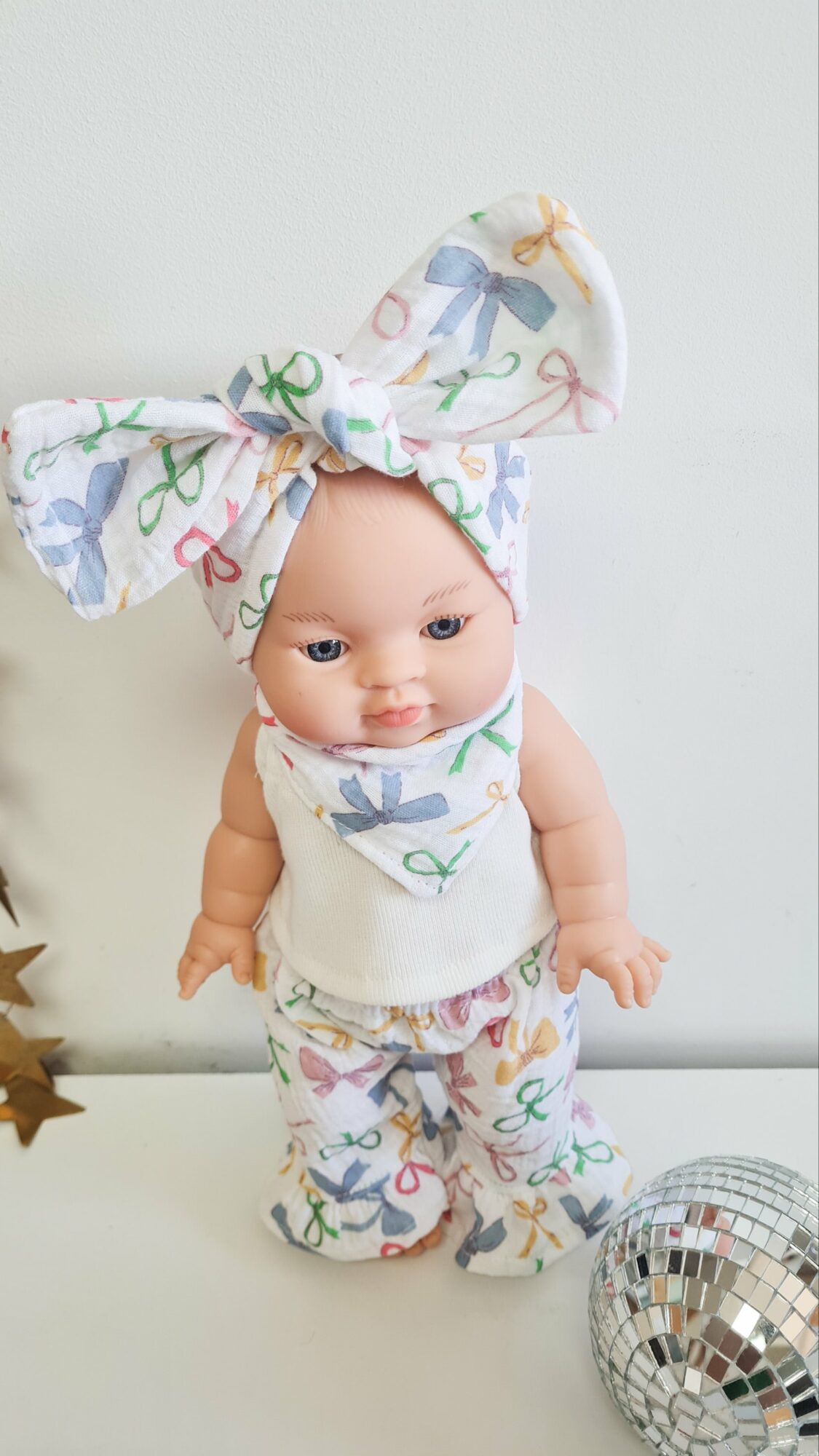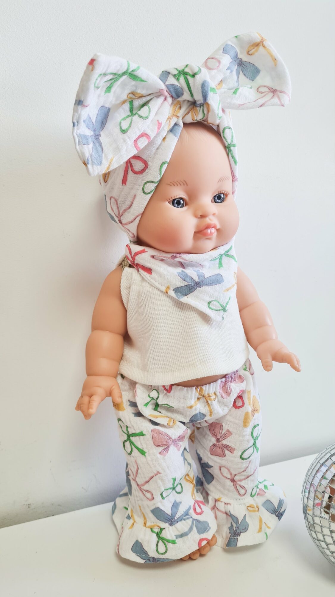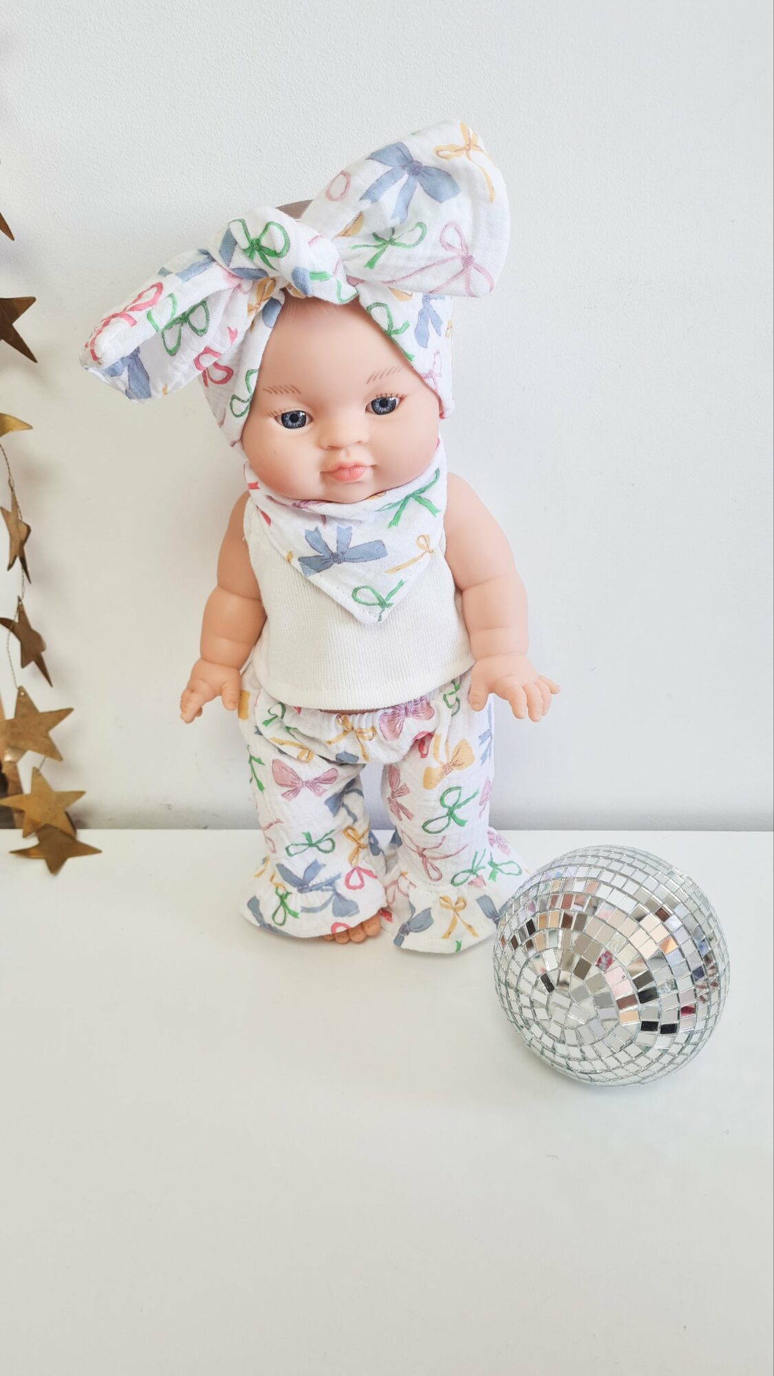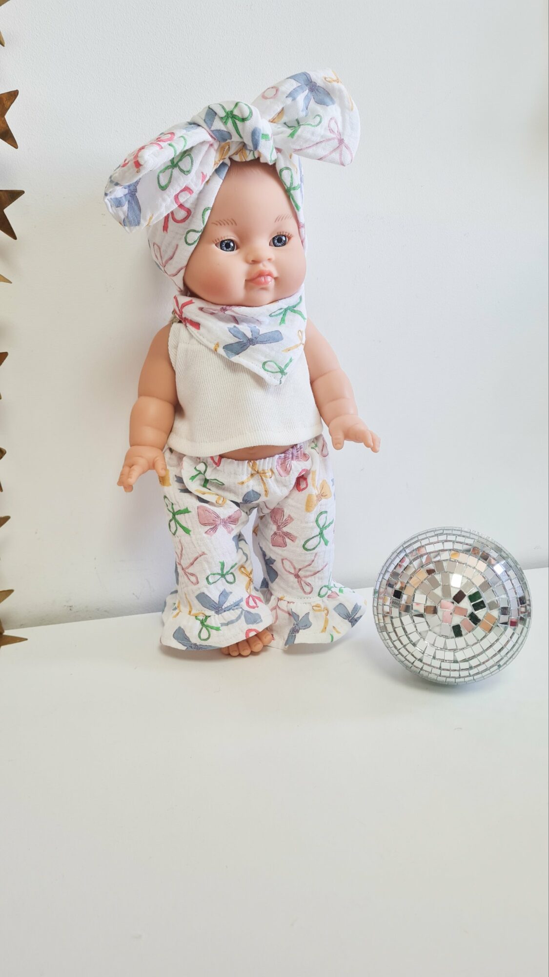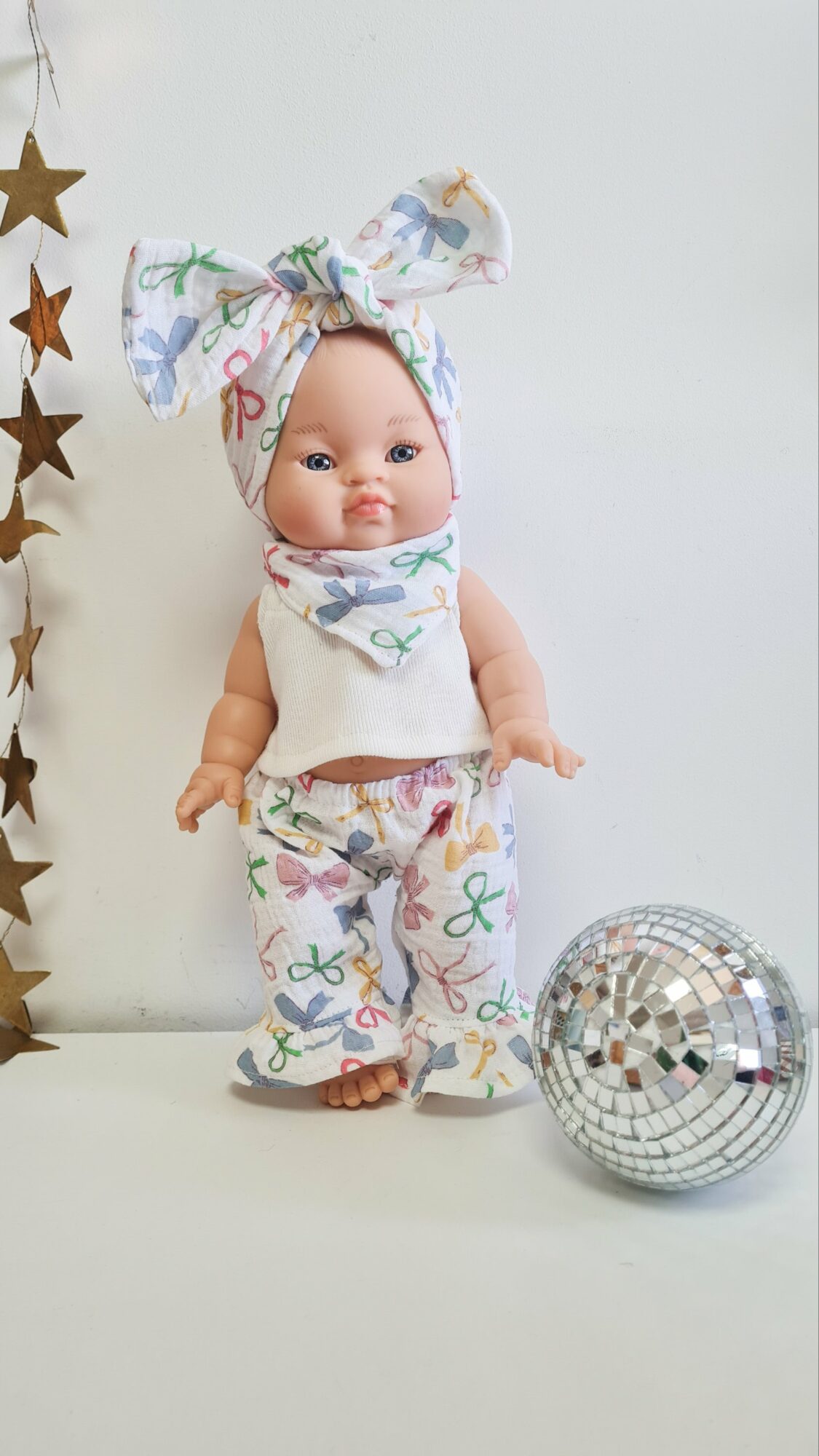 (Poupée ALBA adaptée dès 3 ans. Le pantalon en double gaze demandant un peu plus de patience à enfiler.