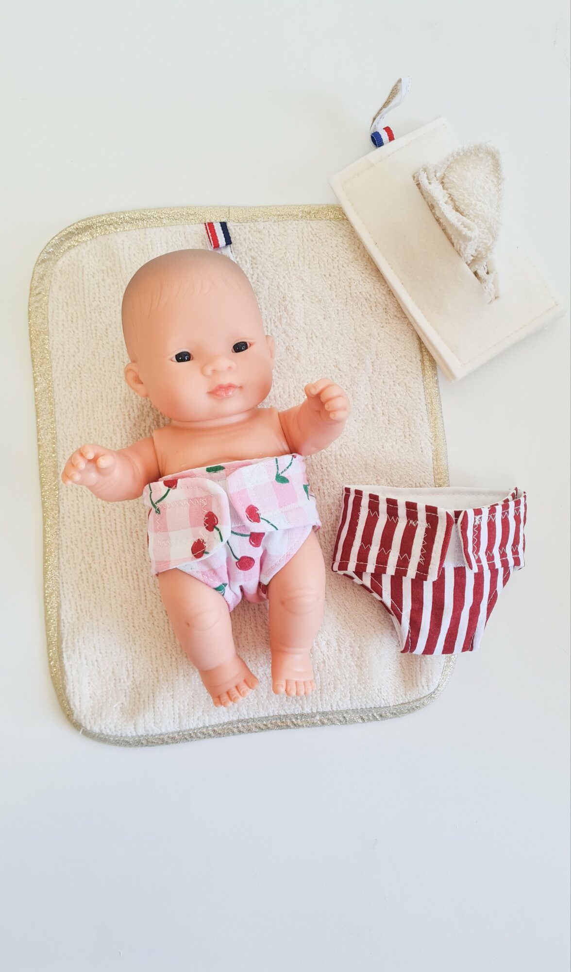 Un coffret de change parfait, fait main et surtout joli pour ses poupées Minus 21cm (Miniland ou Paola reina)